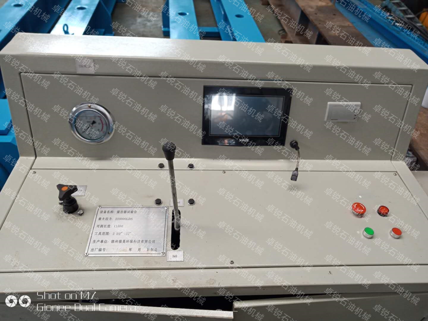 震擊器試驗臺是檢測各種隨鉆震擊器性能的專用設備,用于檢測震擊器性能是否可靠,在鉆具在出現(xiàn)問題的時候,保證有效解卡!